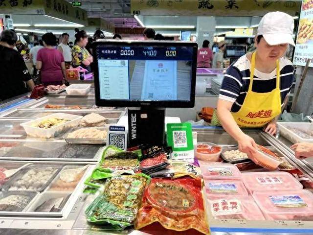 市场里使用的电子秤是AI智能秤,它是经过上海市计量器具强检中心强检过的,每个秤都贴有标签,摊主是无法打开的,不能做任何手脚。”拿一放,就完成了交易。