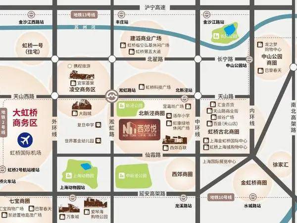 轨交:项目距离2号线淞虹路站650米,四站直达中山公园与3/4号线接轨,距离虹桥机场驾车6公里