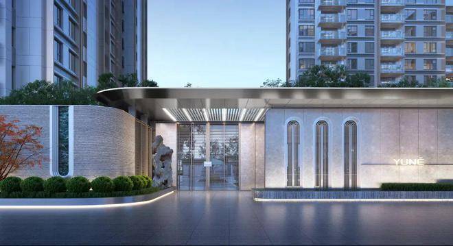 归家动线设置上,业主先穿过酒店式的落客大堂,大堂内设有迎宾待客区,穿过大堂,有灵动水景、景石进入幽静的园林之中。层层递进从喧嚣到静谧、让归家充满了仪式感。
