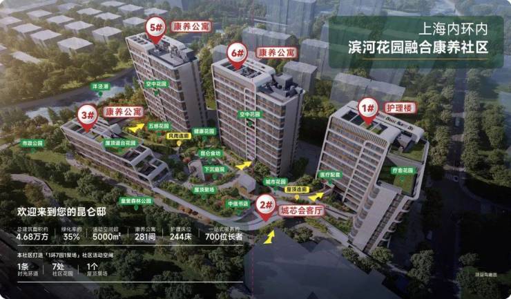 昆仑邸位于浦东新区杨高中路1906号,是上海地产养投、中信养老国央企合作项目,项目地上建筑面积约3.2万方,共有康养公寓281套、护理床位244张。项目配置中信书店、全时段餐厅、四点半学堂等19大“集社”空间,以及记忆环道、空中花园、下沉庭院等“一环七园一聚场”立体景观,活动空间超5000㎡。项目核心价值为“城芯、康养、新融合”,推出五大融合Uni价值体系,包括社区与板块融合、建筑与景观融合、空间与场景融合、医养与服务融合、功能与细节融合,涵盖独立生活、协助生活、介助介护、认知障碍四个阶段,包括社区、餐饮、活动、管家、医疗、家政六大服务模块,为客户提供都市型、一站式、医康养全周期康养服务。