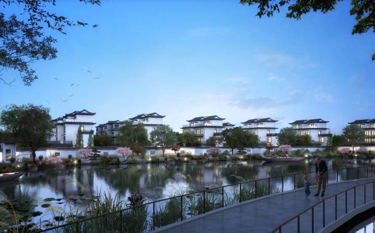 蓝城·桃花源是蓝城集团打造的苏州汾湖湖景中式园林别墅、由双拼和叠加组成枕湖而居每户配独立电梯直达地面和地下室、每户赠送有花园和地下室、项目东侧邻元湖生态公园、东南侧邻「水乡客厅」,华为、中车、英诺赛科等尖端企业环布四周,稳坐长三角C位,生态与发展兼备。产品采用中式古典园林建筑风格,阔气门庭搭配精致园景、粉墙黛瓦,经久耐用而不失典雅与美观,更兼具居住舒适度和私密性。