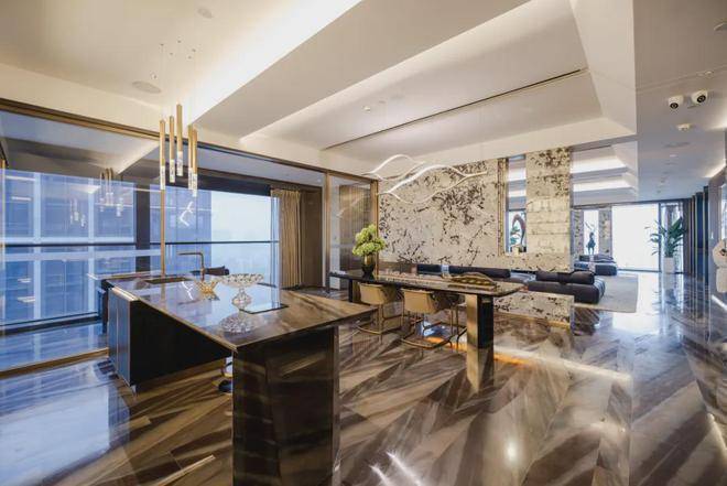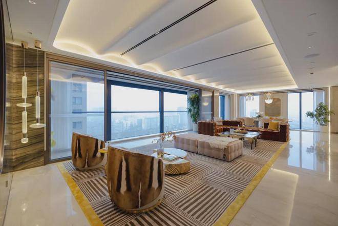 古北中央公园壹号公馆的大平层,不像别墅一样强调垂直空间,而是更注重整体的大空间和平面感。俯瞰广阔的城景,带来的不仅是身份的尊崇感,还有生活品质的进阶。