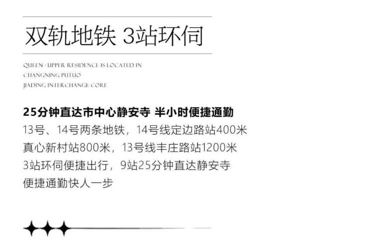 交通立体便捷:14号线定边路站500米,紧邻沪蓉高速,曹安公路城市主干道,驱车10分钟左右上中环和外环。