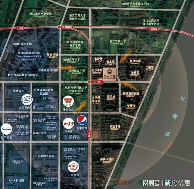项目地处有下沙中轴之称的6号大街上,临近地铁1号线云水站A出口,属于下沙核心发展片区。聚高端产业资源,汇聚如百世可乐、西门子、东芝等众多世界500强企业及加多宝、味全等大型知名企业。