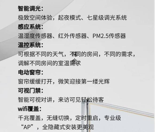 wifi覆盖: 千兆覆盖,无缝切换,定时重启,专业级“AP”,全隐藏式安装更美观