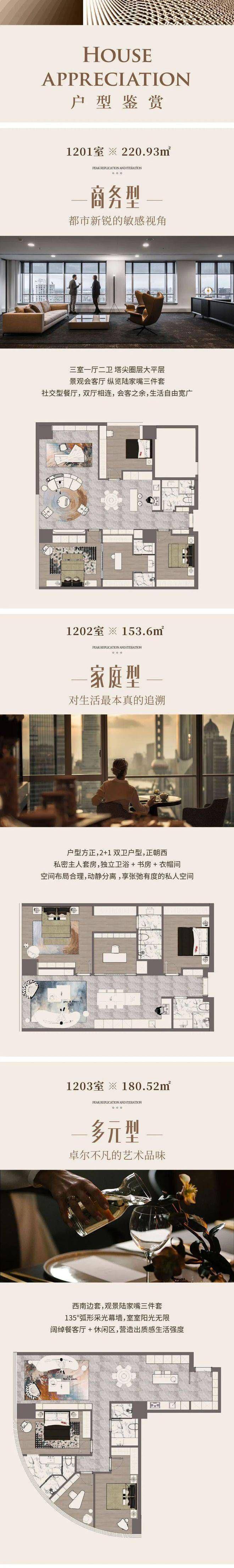 220.93㎡户型:三室一厅二卫,塔尖圈层大平层,景观会客厅可纵览陆家嘴三件套,社交型餐厅,双厅相连,生活空间自由宽广。