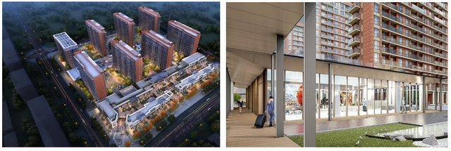 路劲·隽芳华设置了一条礼仪主轴,结合风雨连廊设置中央会所,连接到各活力公寓;在中轴下设置下沉庭院,创造了一个立体的综合文化和商业休闲空间。