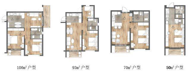 路劲隽芳华中活力公寓户户朝南布局,共有四种房型可选择,分别是50m、70m 、 93m的一室一厅和 106m的两室一厅产品,为独居长者、夫妻长者和高端长者提供了不同的生活场景;护理院以50m的开间为主。