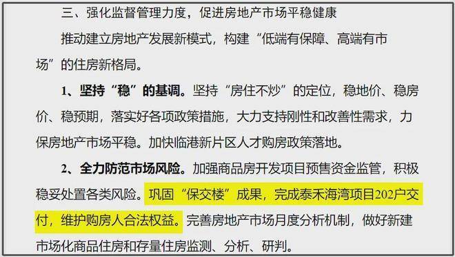 巩固“保交楼”成果,完成泰禾海湾项目202户交付,维护购房人合法权益。
