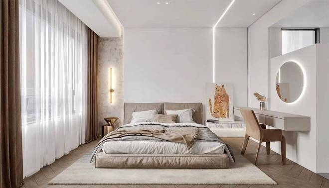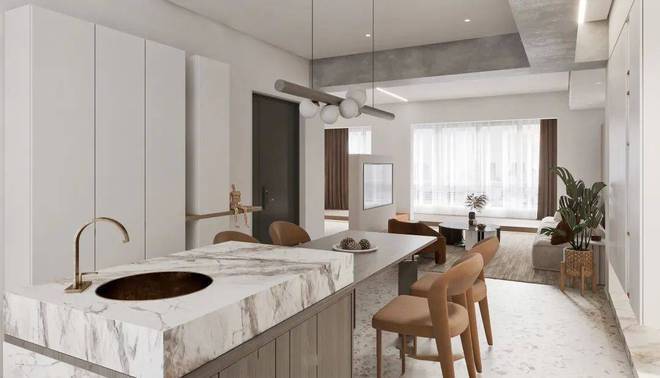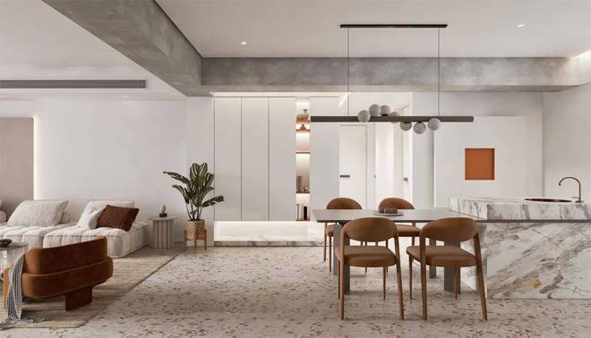 设计师采用了极简主义的风格,搭配温暖的棕色和米色调,让整个空间充满了温馨的氛围。