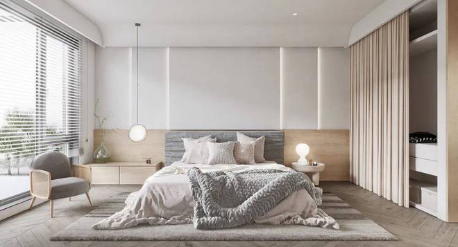 卧室是一个人最私密的空间,所以我们特别注重舒适感。我们采用了暖色系的墙面、床品和地毯,让整个空间更加温馨。