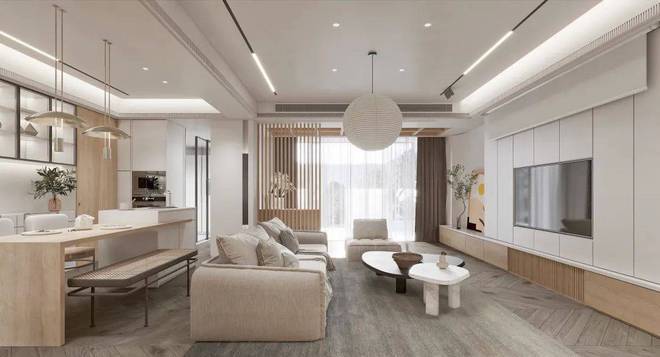 现代极简的家居风格,采用了大量温柔暖色系的装饰,使整个家居空间更加温馨舒适,营造了一种宁静的氛围。整个房间利用木质家具搭配柔和的灯光,增加了居家的温馨感。