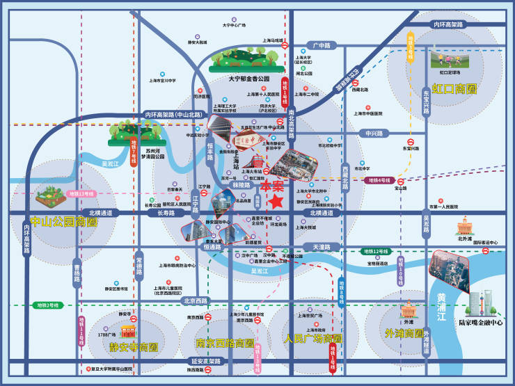 医疗:静安区中心医院,上海市中医医院,上海第十人民医院,上海新视界中兴眼科医院,复旦大学附属华山医院,上海市静安区北站医院,上海市儿童医院(北京西路院区),上海市眼病防治中心,上海市普陀区人民医院