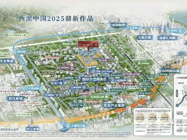交通:地铁9号线、有轨电车T2线、茸兴路、广富林路、沪松快速路(预计2028年竣工)等