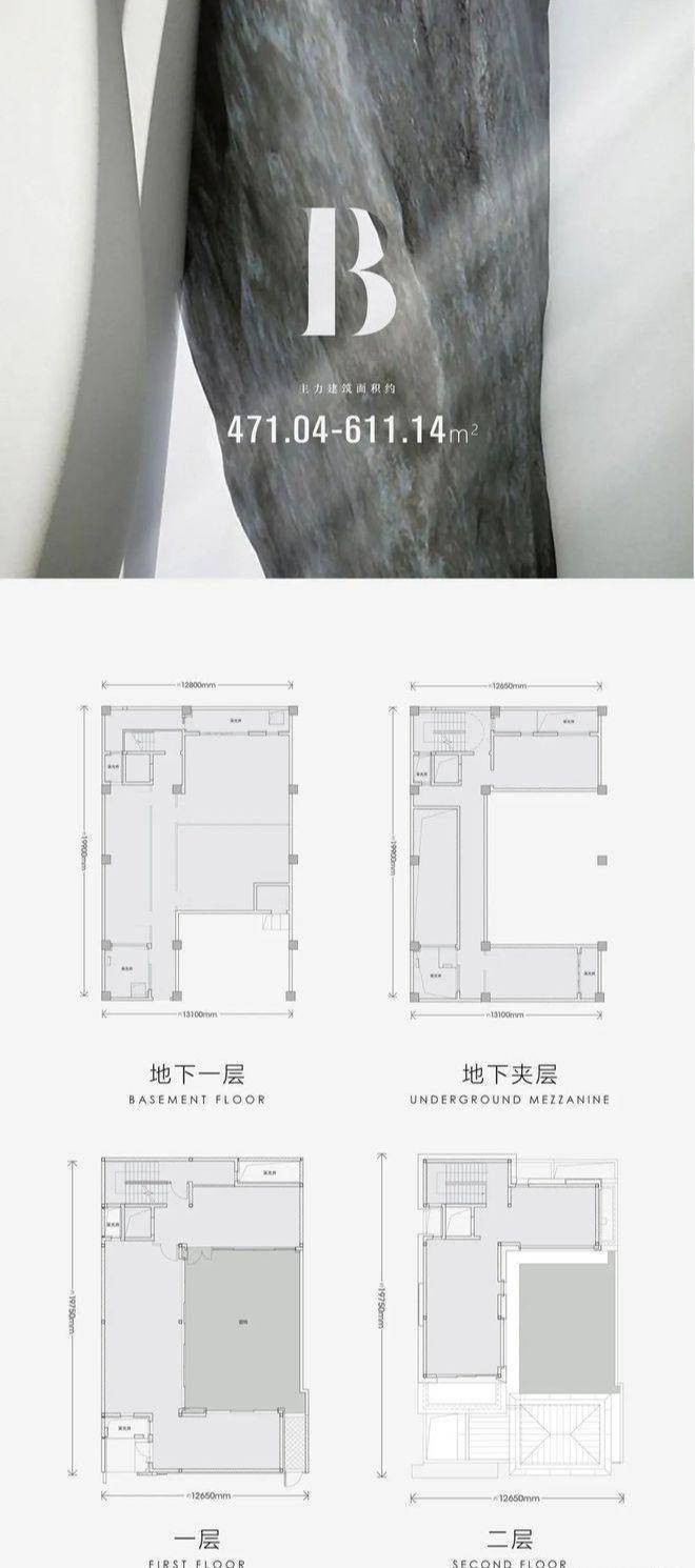 户型亮点:A/B/C/D四类户型覆盖471-825㎡,地上层高3.8米(首层)至3.2米(二层),地下空间层高可达6米,打造灵活的多功能区域。部分户型拥有12.6-19.1米大开间,车库入户设计提升私密性。