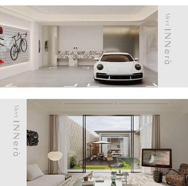 在产品设计上,天宸艺墅的合院别墅呈现出"中西合璧"的鲜明特色。建筑外立面采用石材、铝板与玻璃幕墙的组合,通过竖向线条和坡屋顶设计展现现代简约风格,而内部空间布局则借鉴了传统四合院的围合理念。主力户型为建筑面积约210-260平方米的叠拼合院,通过"前庭后院"的立体院落设计,实现了"空中庭院"的创新概念。以一套典型的边套户型为例,地上三层包含客厅、餐厨空间及三间卧室,地下层则规划为多功能娱乐区,通过约6米挑高的下沉式庭院解决采光难题。这种"地上居住+地下社交"的功能分区,精准契合了高端客群对私密性与社交性并存的需求。