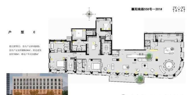 ▲ 659.04㎡丨4室3厅4卫1花园丨赠送面积100㎡丨赠送户外花园25㎡