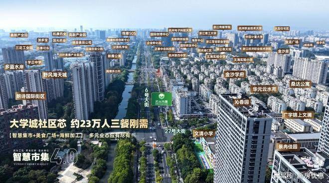 :下沙核心,杭州具代表性的产城、高校联合联合板块,辐射周边2公里23万居民,步行可达性强,满足日常高频采购需求。