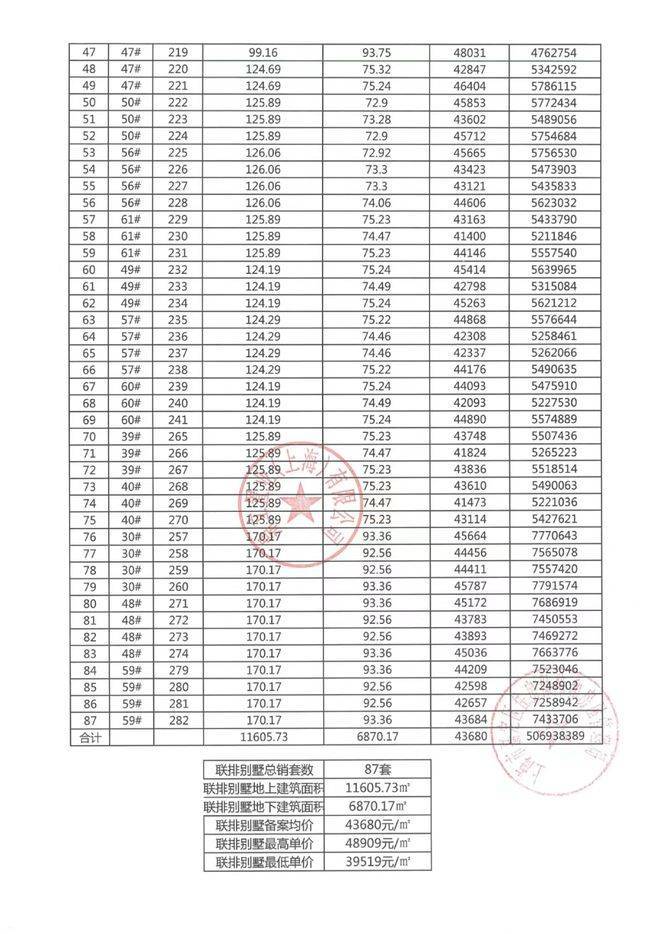 最新一房一价表: