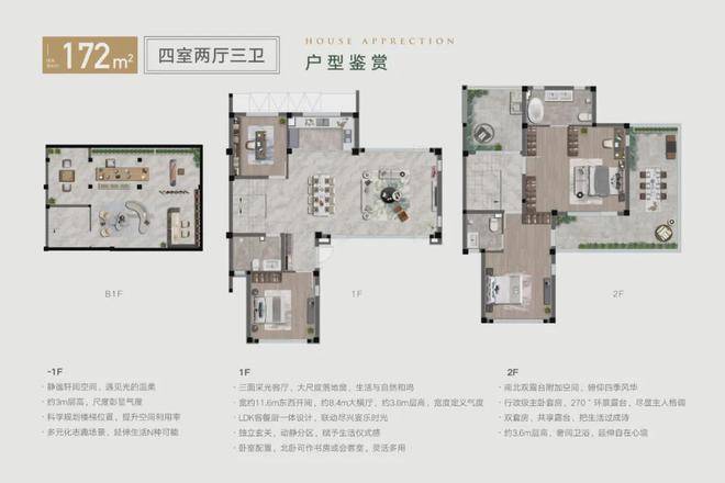 首层约3.6米的尊享层高,通过全方位的视野, 将别墅产品的独特气质展现得淋漓尽致。