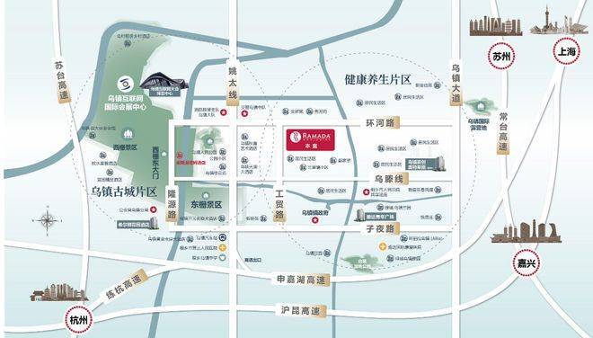 地理位置:项目位于嘉兴乌镇环河路与工贸路口,紧邻乌镇西栅景区门口,步行可达景区。