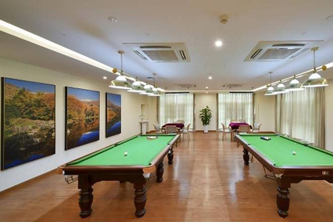 机构内设1200平方米智能活动大厅、恒温泳池、体感游戏室、光影疗愈室等活力空间,以及棋牌室、书画室、手工艺室、影视厅等文化娱乐场所。屋顶农场规划了环形步道、药草种植区及门球场,长者年均参与生态种植活动可消耗热量提升18%,抑郁量表评分下降22%,实现“生态疗愈”与“健康管理”的深度融合。
