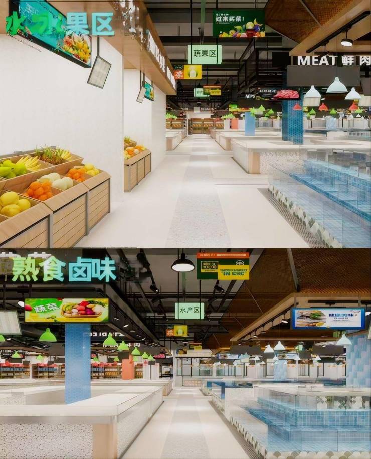 包含业态蔬菜、水果、水产品、海鲜、禽蛋、各种肉类,豆制品、粮油米面、熟食、卤味、调味品、干杂、冻品、面食