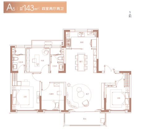 不同的家庭,预算与需求亦不相同。也正因如此,项目还推出了建面约143㎡四室两厅两卫,满足了改善家庭的高阶居住需求。