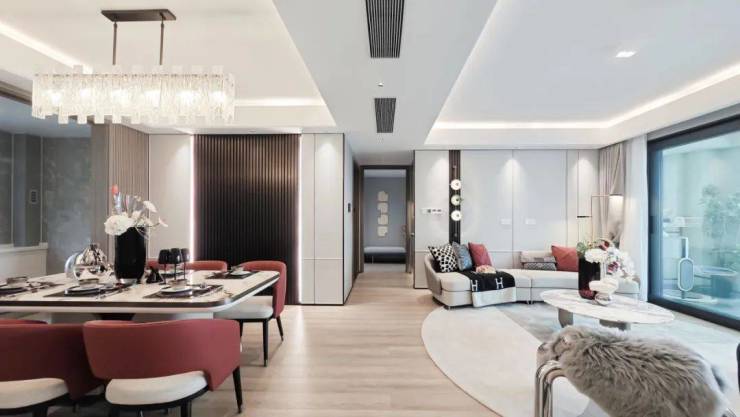 客餐厅呈一体化设计,延伸了空间的尺度,外接宽阔阳台,视野和采光都很良好。
