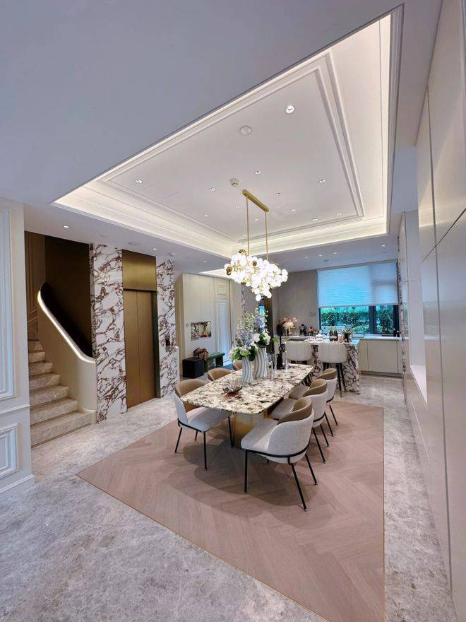 在室内设计上,入户大堂采用二层挑空设计,高贵大气,凸显空间感,提升大平层的整体价值;另外,充分利用南侧联排区屋面绿化及景观绿化,将联排区的优良景观引入大平层,将景观利用率做到最大化!