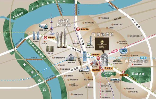 世纪公园、陆家嘴滨江生态长廊、竹园绿地等