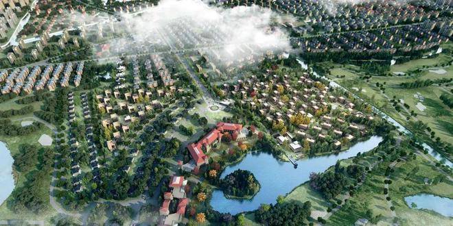 美兰天地位于宝山美兰湖板块核心,紧邻上海唯一36洞USGA标准高尔夫球场。球场由18次大满贯得主、传奇设计师杰克·尼克劳斯亲自操刀,既是国际赛事场地,也是城市稀缺生态资源。项目直接嵌入球场中央,34栋独栋别墅被绿地、森林、湖泊环绕,堪称“住在高尔夫球场里”的上海孤品。