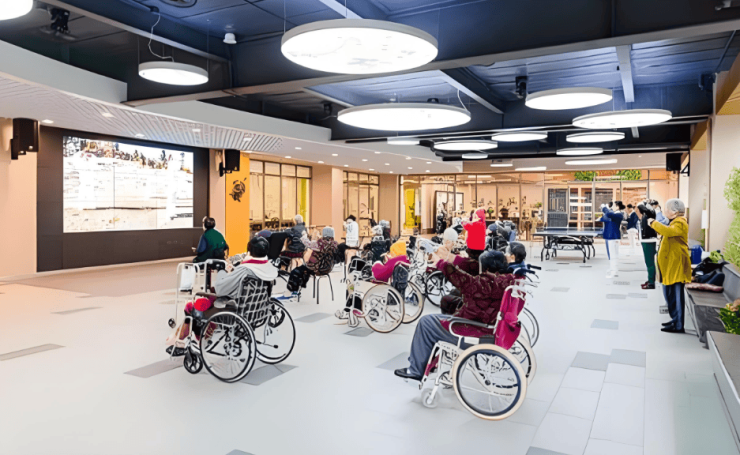 广州颐寿长寿院通过物联网技术实现“无感化”照护:床头智能终端可实时监测心率、呼吸等数据,异常情况自动推送至医护端;公共区域部署智能送餐机器人,减少人员接触风险;家属可通过专属APP查看健康报告、护理记录及活动安排,实现远程关怀。平台对接院内HIS系统,使管理效率提升60%,家属满意度达98.7%。此外,全院覆盖无障碍通道,公共区域与房间均设有24小时监控摄像头,门禁系统需身份验证方可进入,为长者提供全方位的安全保障。