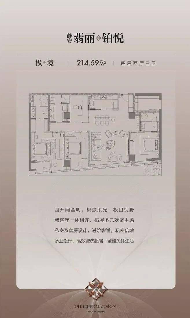 【极境】建筑面积约214.59㎡丨4房2厅3卫(双套房)
