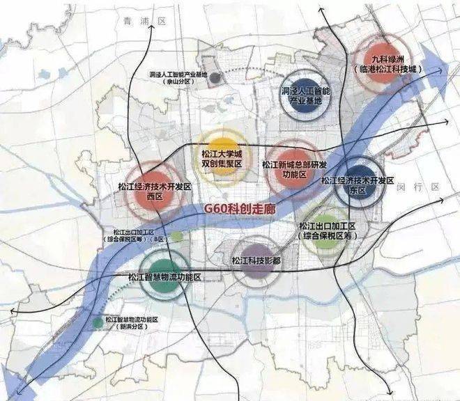 G60科创云廊,集中了松江区90%、上海市近10%的工业产值,有17个国家和省部级重点实验室、社区内有500强企业。