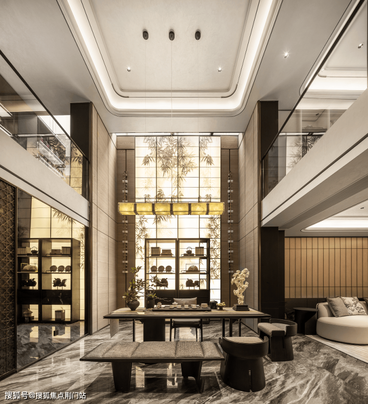 作为银湖首个宋风美学园墅,项目归家大门宽约32米,以60吨太行山老石皮砌筑背景墙,配以日本进口罗汉松,从第一眼便奠定精致奢华的基调。