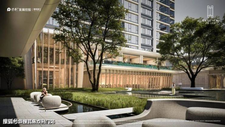 天奕整体抬高约5.4米,由此形成的周长约1100米沿街面,保利没有做成围墙,几乎全规划为邻里商业、社区食堂和口袋公园等。