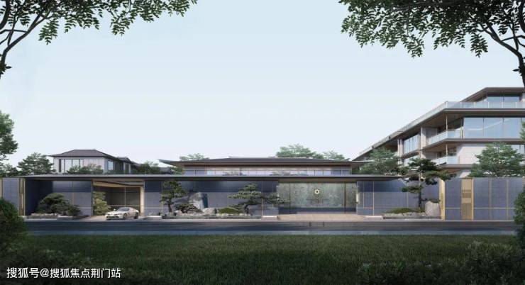 建筑立面:古今交融的诗意表达:外立面以香槟金铝板为基调,搭配蓝眼睛石材与玻璃幕墙,融合传统歇山重檐、纳福悬鱼等元素,既保留宋式建筑的对称美学,又赋予现代建筑的轻盈通透。合院组团采用三面庭院设计,L型景观面与环绕式檐廊,将超山梅影、丁山湖光引入每一扇窗景!