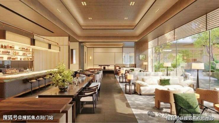 大门出入口在南面祥园路,景观上复刻安缦酒店的氛围感和松弛感,65米恢弘门庭气势夺人,30米的长镜面水景,门口的罗汉松价值超百万,波光灿影巨厅,进口的意大利宝格丽绿奢石和皇家白玉石,情绪价值满分