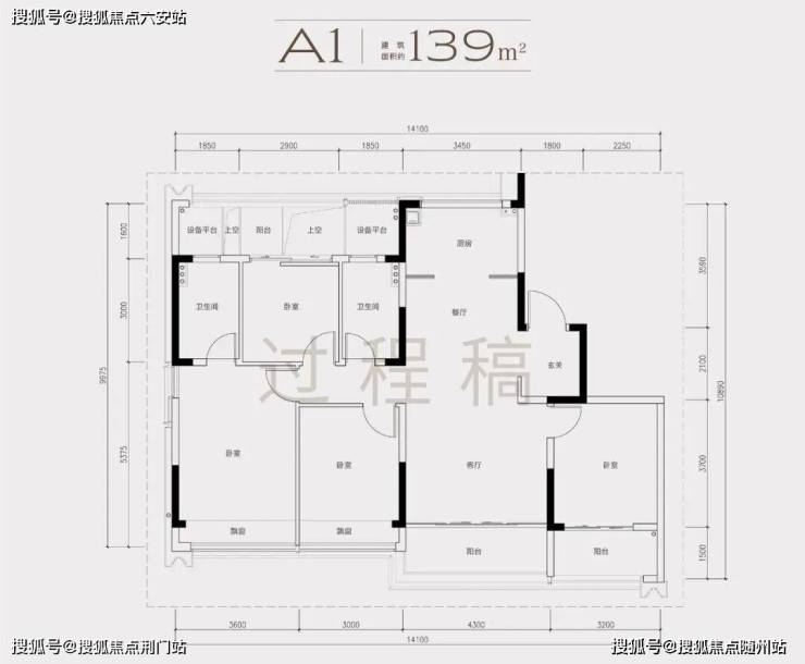 建面约139㎡户型实现类一梯一户设计,南向开间14.1米,四开间朝南;约170㎡户型餐客厅面积达44㎡,厨房开间4.35米;约190㎡户型创新打造五房三卫,主卧配备270°无柱转角飘窗。