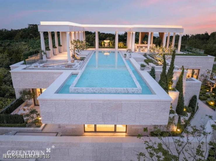 在被绿城定义的桃花源板块,杭州溪径恒庐是绿城低密初心的延续,也是对“日升月恒,亘古不变”的致敬。项目利用土地原有特质与肌理,以一条长约200米的法式柱廊串联两大会所,写意松弛的人生风景。