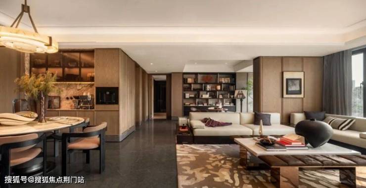 除了户型设计优秀,户内装修风格也同样精致。建面约230平户型装修设计来自于近境设计唐忠汉大师手笔,打造隐奢逸境风格。