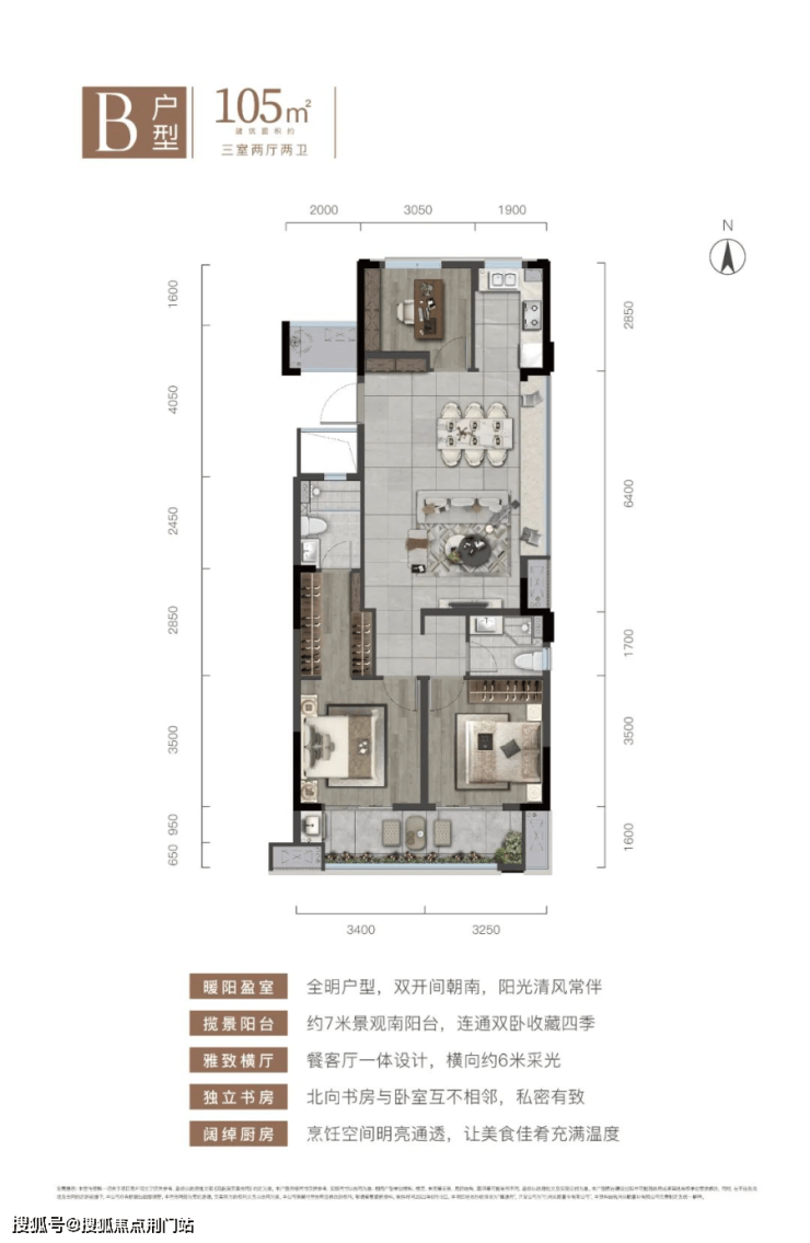 建面约89m²全能大三房,主次卧空间充沛,主卧套房式设计、三开间朝南向、双卫设计,空间多得;建筑面积约105㎡大三房全明户型,双卧朝南、拥约7米南向景观阳台、餐客一体横向约6米宽幅采光。更高的得房率,安放生活多重逸趣。