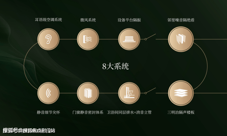 为了对抗噪音,项目采用了“8维静音系统”,这不仅是加厚隔音设备,而是从设备声、排水声、门窗外的噪音到邻里间的噪音的全维度降噪。