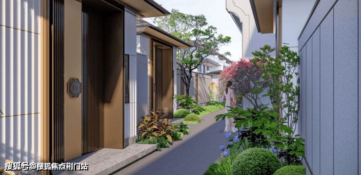 穿过廊桥,景致渐入佳境。曲径回廊、树影婆娑,浅溪沿石阶轻淌,仿佛步入宋代文人“曲水流觞”的雅集现场。巷弄徐徐展开,一街四巷两弄格局间,既有传统里坊的邻里守望温情,又不失现代社区的疏朗大气。