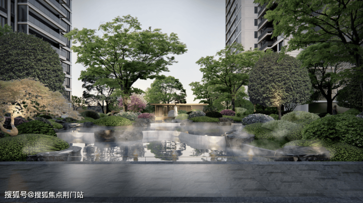 四面皆景,环幕风光: 得益于核心占位, 15#楼还拥享得天独厚的景观视野与资源,南面阳光草坪—— 语香花洲 , 结合场景式吧台,打造 充满活力 的社交剧场。 高低错落的绿植与四季盛放的繁花,成为亲友相聚、休闲畅谈的自然背景,尽享时光的惬意与疗愈; 北面水院会客厅 —— 行云水苑 ,曲径环抱,浮光映波,一方下沉式休憩会客空间,在水韵的涟漪中,与知己同坐,感受生活的松弛;东面 T型水系,推窗即揽粼粼波光,将诗意水景融入日常,每一眼都是治愈人心的风景。