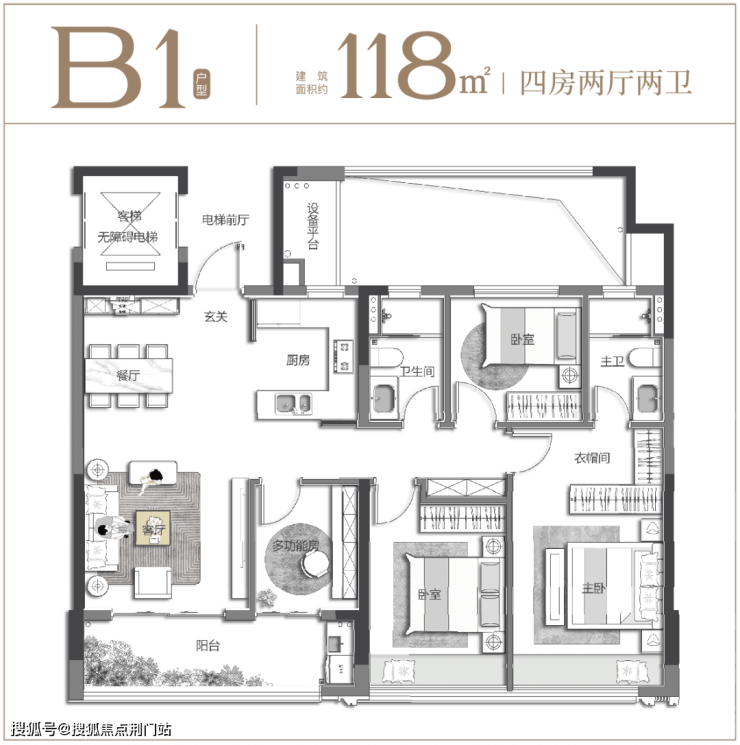 建面约 118㎡宽幕四房同样极具亮点, 以更阔绰的尺度空间,拥享生活更多自由百变的可能性,尽显生活质感。阔绰大横厅彰显豪宅尺度,社交宴客、巨幕观影、亲子游戏 ……容纳生活的无限逸趣,约 12.4米巨幕尺度,尽揽城市璀璨的同时,更带来充沛采光,让空间更加通透明亮;多功能X空间可以根据家庭需求而变,可化身儿童房、电竞房、瑜伽房、健身房等,为未来生活预留更多可能性 。