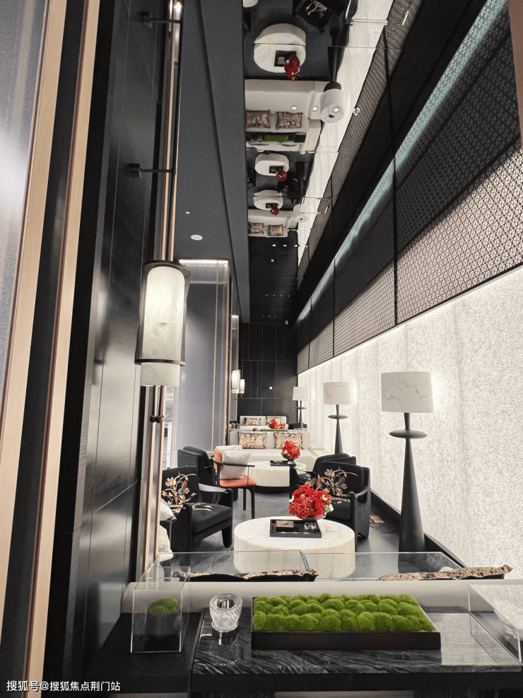 漫步于光影交织的幽静庭院,您将踏入一方充满诗意的天地。潺潺流水映照着婆娑树影,挺拔树姿为这片空间注入向上的生机,纵向延伸出无限的视觉张力。这座下沉庭院,不仅拉近了建筑与自然的情感共鸣,更使室内与景观紧密相连、和谐相融。每一扇窗户,都犹如框中的一幅生动山水画。