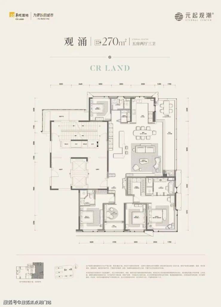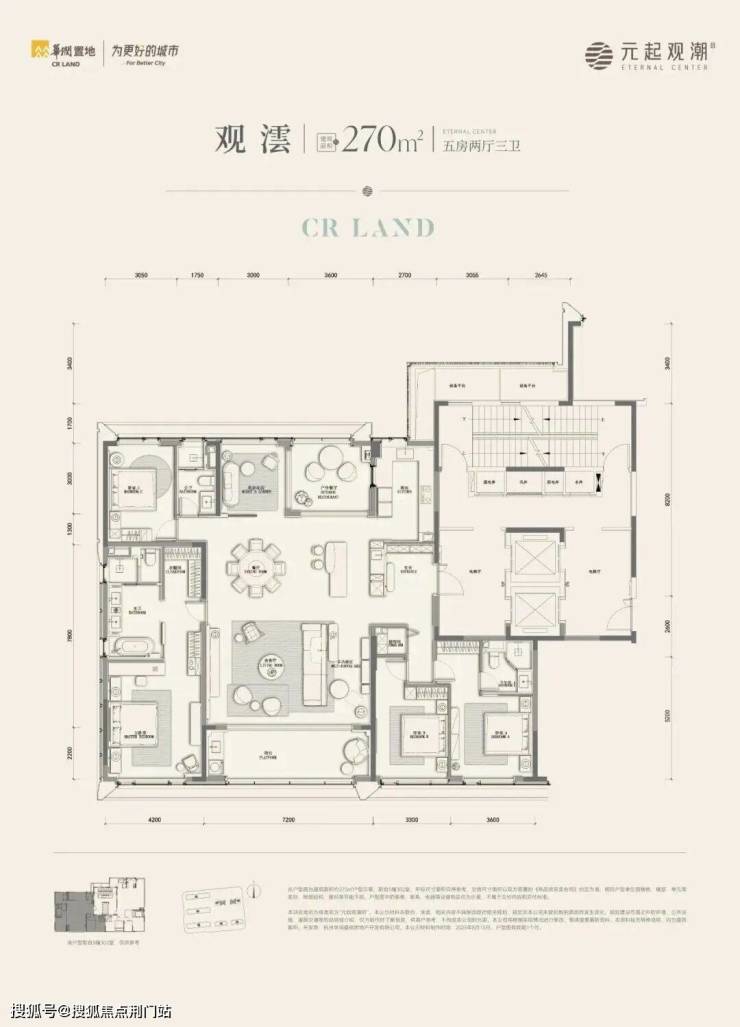 建面约270㎡户型有边厅和南厅两款: