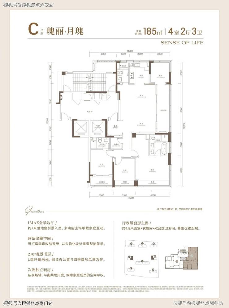 185㎡ 4室2厅3卫 LDKB空间近50㎡,7米落地窗